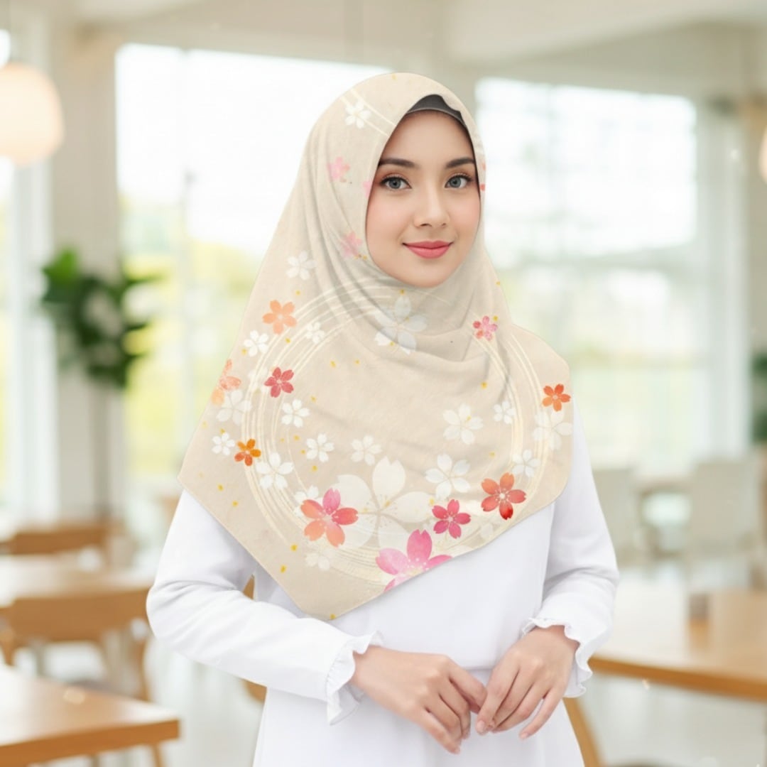 [KREM] Sakura Hijab yang memiliki keindahan berkelas dan nuansa lembut akan mempercantik gaya Anda. Hijab ini memiliki desain yang simpel namun elegan, warna hitamnya mudah dipadukan dengan pakaian apa pun sehingga terlihat stylish. Terbuat dari bahan yang memiliki sirkulasi udara yang sangat baik dan tetap nyaman meskipun dipakai dalam jangka waktu lama, dapat digunakan oleh banyak orang, mulai dari pemula hingga pengguna berpengalaman. Teksturnya yang indah, bertabur pola bunga yang cantik, menciptakan kepribadian yang halus dan menjadikan momen spesial Anda semakin cemerlang.